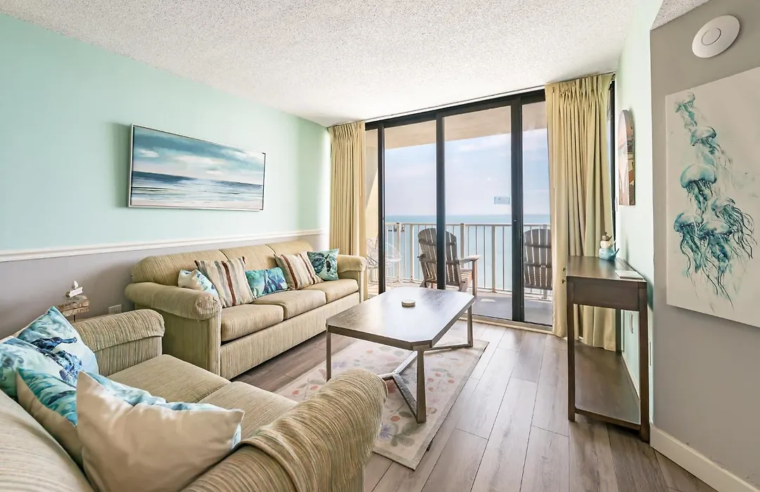 The spacious New Direct Ocean View, Exclusive Sand Beach Club! Myrtle Beach apartment is located in Myrtle Beach, a 25-minute walk from Arcadian Shores Golf Club, and pampers guests with a hot tub. This apartment features Wi-Fi in public areas.